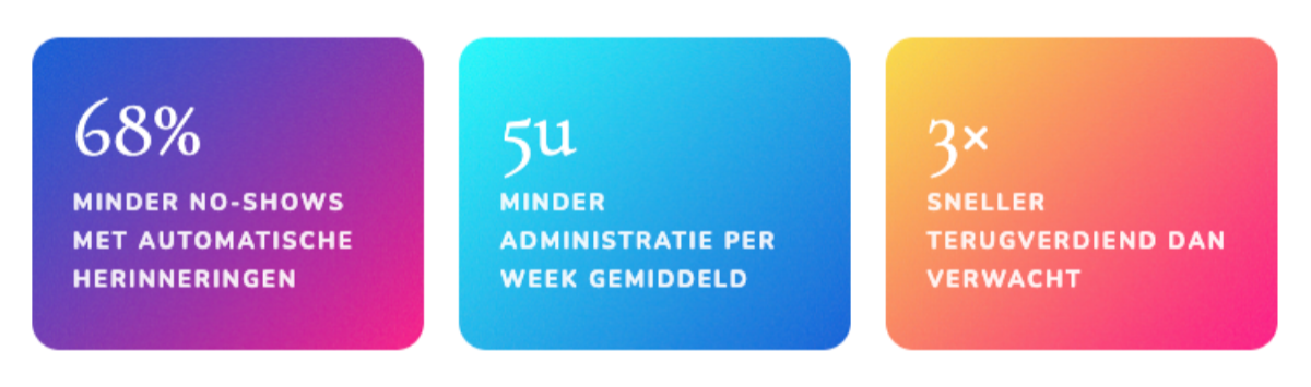 De combinatie van minder no-shows en meer efficiëntie zorgt vrijwel altijd voor een snelle return.
